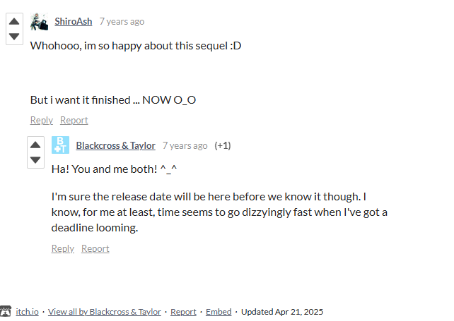 The love I have for this game is honestly beyond words. I’ve been scrolling through the comments for hours literally until I reached the very last one. Reading all these reviews has me feeling both scared and incredibly excited to finally play it once it’s on Steam.